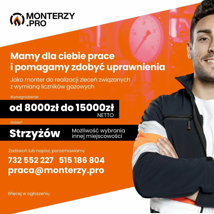 Firma monterzy.pro – poszukuje Monterów do realizacji zleceń związanych z wymianą liczników gazowych dla Polskiej Spółki Gazownictwa Sp. z o.o.Kogo szukamy?